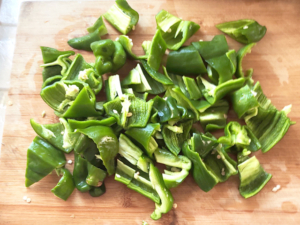 ![]() ①ピーマンは種とヘタを取り、乱切りにします。 |