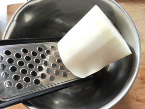 ![]() ③大根は皮をむき、おろし金ですりおろしましょう。 |