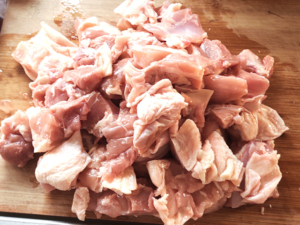 ![]() ①鶏肉は、大きめの一口大に切ります。 |