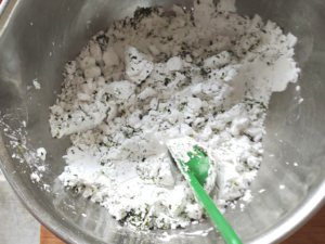 ![]() ③別のボールに片栗粉と青のりをよく混ぜて、衣を作っておきます。 |