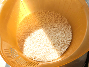 ![]() ①もち米は軽くとぎ、30分置きます。 |
