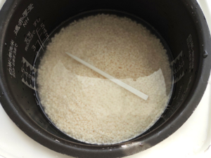 ![]() ②割り箸などを横にして、ひたひたになるくらいまで水を足したら、普通に炊飯器で炊きます。 (早炊きはNGです。) |