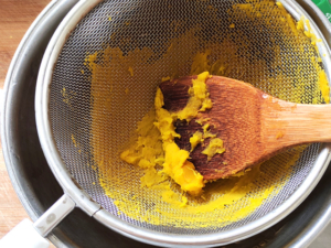 ![]() ⑩南瓜を裏ごしすれば、南瓜餡の完成。 |