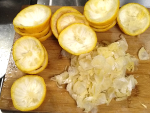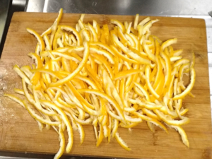 ![]() ④ゆずの皮は、出来るだけ細切りにします。 |
