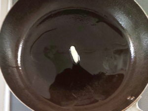 ![]() ④フライパンにサラダ油大1(分量外)を引き、にんにくを弱火で炒めて香りを出します。 |