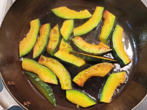 南瓜は蒸し焼きにすると、中まで火が通るのが早くなり、固いままという失敗も防げます。