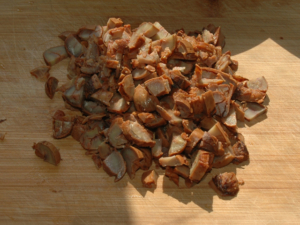 ![]() ⑧★マロンクリームの栗の渋皮煮は、小さく刻み、渋皮煮のシロップと共に、ミキサーなどにかけ、攪拌しましょう。 |