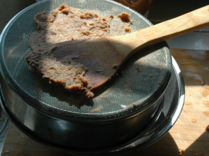 栗の渋皮煮は、ミキサーを使わず、ダイレクトに裏ごししても良いですが、固めの栗の場合、一度ミキサーにかけてから裏ごしした方が簡単です。