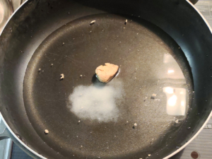 ![]() ①鍋に水、ウェイパー、塩を入れて加熱し、しっかりと調味料を溶かします。 |