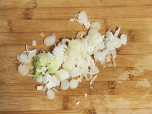 ![]() ②ボールに、砂糖、カンタン酢、醤油、切ったねぎを加え、良く混ぜ合わせておき、ネギソースを作ります。 |