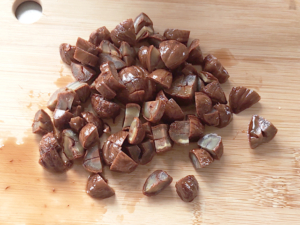 ![]() ①栗の渋皮煮は、1~1.2cm角に切っておきます。 |