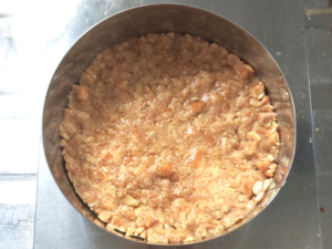 ![]() ②セルクルをオーブンでも使える台に乗せ、クラッカーをまんべんなく敷き詰めます。 ③使うまで、冷蔵庫で冷やしておきましょう。 |