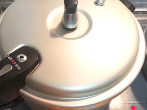 ![]() ④蓋をして強火で加熱し、重りがカタカタしたら、弱火にして8~10分煮込みましょう。 ⑤煮込み終えたら、蓋が取れるまで室内に放置します。 |