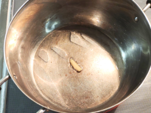 ![]() ②鍋に油を引き、弱火で生姜を炒めて香りを出しましょう。 |