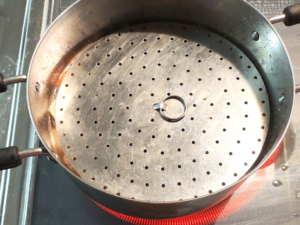 ![]() ④鍋に、里芋、人参、お湯、砂糖、みりん、ほんだし、醤油を加えて強火で煮立たせます。 |