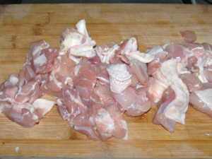 ![]() ①鶏肉は食べやすい大きさに切ります。 |