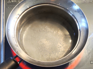 ![]() ③鍋に、水、砂糖、醤油、ゆずの果汁、を入れて火にかけます。 |