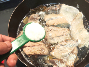 切り身が厚めだったので長く火を通していますが、全体が白くなればOKなので、魚の状態を見ながら火を通してみてください。