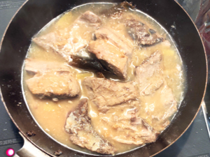 ![]() ②沸騰したらブリの切り身を加え、途中裏返しながら、全体が白くなるまで火を通しましょう。 |