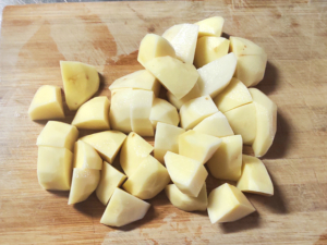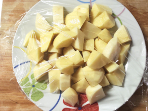 ![]() ①じゃがいもは皮をむき、一口大に切ります。 |