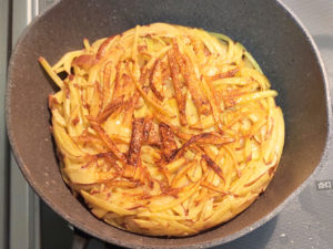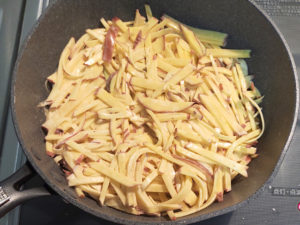 じゃがいもに火が通らないと美味しくないので、若干長めに火を通しています。