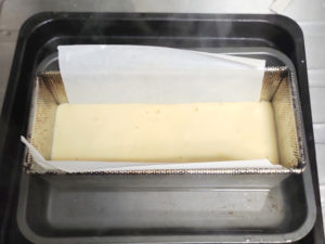 150度のオーブンで30~35分湯せん焼きします。