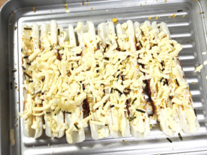 ⑤オーブントースターで5~6分焼き、チーズが溶けたら完成です。