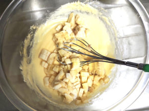⑤ボールに加えて、全体にバナナが散るように混ぜ合わせましょう。