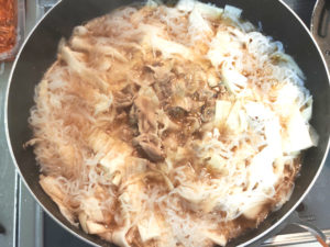 ![]() ④白滝は水気を切って、短めに切り、大根の上に乗せます。 |