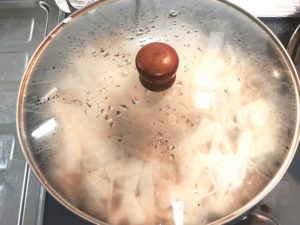 ![]() ⑤蓋をして、中火で10~12分ほど煮て火を通しましょう。 |