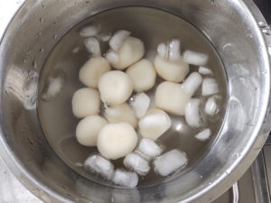 ![]() ⑥団子がゆだったら、氷水に漬け込み、しっかりと冷ましましょう。 |