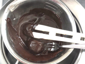 また裏ワザとして、溶けたチョコにひとかけら溶けていないチョコを加えると、温度差が生まれてテンパリングいらずです。