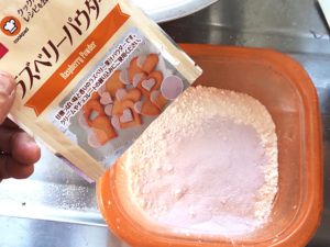 ![]() ⑥今回は、100均ダイソーのラズベリーパウダーを使いました。 |