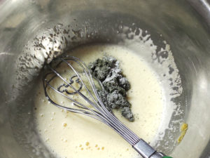 ![]() ④蓬粉末を加え、全体に散るようによく混ぜ合わせます。 |