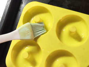 ![]() ⑦シリコン型に薄く油(分量外)を刷毛で塗りましょう。 |