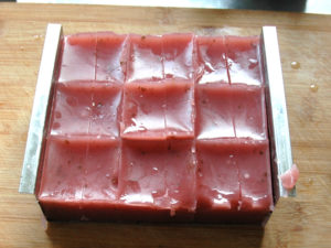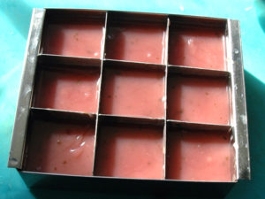 ⑤仕切りのついた寒天型(今回は9PCタイプ)を水で濡らしておきます。