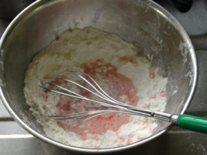 ⑦衣の材料をボールに入れ、もったりとするまで混ぜ合わせましょう。