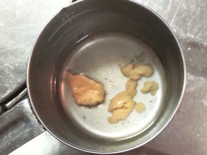 ![]() ⑦計量カップに水を入れ、ウェイパーを入れて溶かしておきます。 |