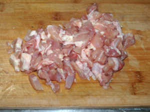 ②鶏肉は、人参や椎茸に合わせて、小さめに切りましょう。
