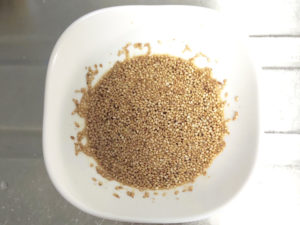 ![]() ②小さめの容器に、みりん、醤油、カンタン酢(なければ寿司酢でも)、砂糖、いりごまを混ぜて溶かし、調味料を作っておきましょう。 |