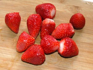 ![]() ①苺はそれぞれ、へたを取っておきます。 |