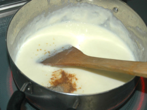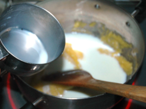 牛乳を追加する時には、必ずダマがなくなり、クリーム状になってから、次の牛乳を加えてください。