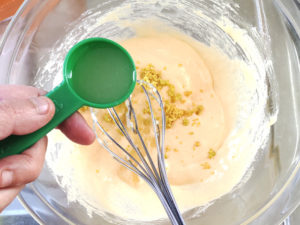 ![]() ④レモン汁とレモンの皮を加え、良く混ぜ合わせます。 |