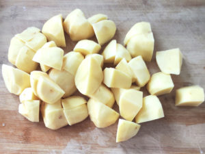 ①じゃがいもは皮をむき、一口サイズに切ります。