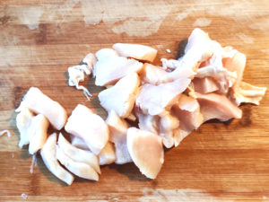 ![]() ③鶏胸肉は薄切りにします。 |
