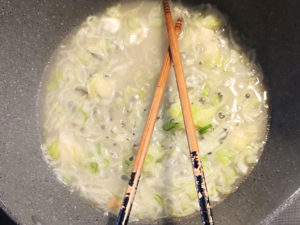 ![]() ⑧フライパンの中身を皿などに盛りつけ、同じフライパンに、★ネギ塩だれの材料を混ぜたものを加えます。 ⑨調味料が溶けてから、中火にかけ、とろみがついたらOK。 |