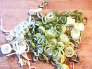 ![]() ④にらは8mm~1cm幅くらいに切りましょう。 |