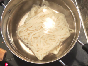 ![]() ⑦鍋にたっぷりのお湯を沸かし、うどんをパッケージの表示時間より30秒ほど早く取り出します。 |