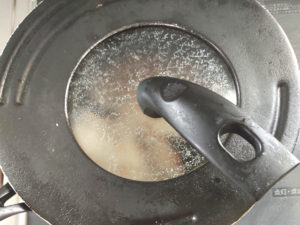 ![]() ⑤蓋をして、弱火で4~5分蒸し焼きにし、しっかりと火を通します。 |