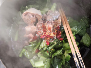 鯖缶アレンジ!オイル漬け鯖缶と小松菜のピリ辛炒め